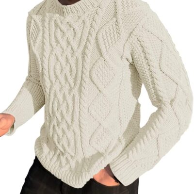 Men’s Slim Crewneck Pullover Sweater Winter Casual Chunky Cable Knit Comfort Heavy Long Sweaters