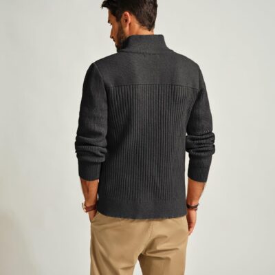Men’s Full Zipper Cardigan Casual Stand Collar Cardigan Sweater Ribbed Knit Long Sweater
