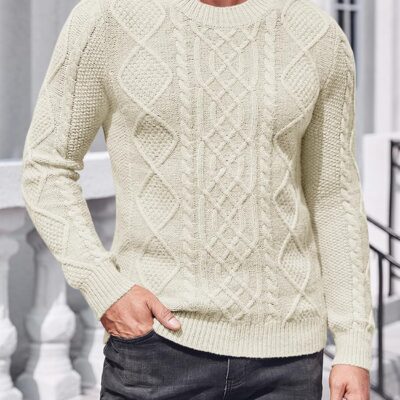 Men’s Slim Crewneck Pullover Sweater Winter Casual Chunky Cable Knit Comfort Heavy Long Sweaters