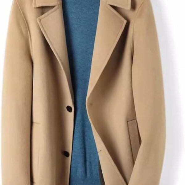 Men’s Long-Sleeved Wool Coat Winter Warm Short Coat Casual Lapel Pea Coat