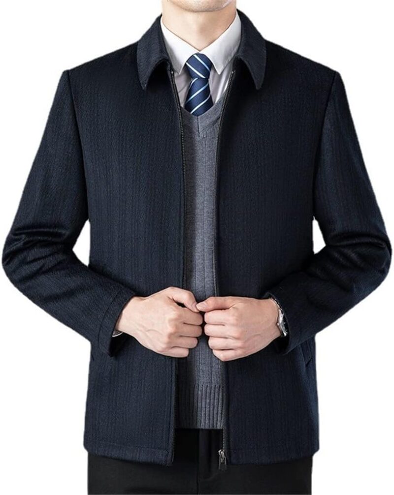 Autumn and Winter Middle-Aged and Elderly Silk Wool Jacket Men’s Cashmere Men’s Woolen Coat Casual(D,195 Code)
