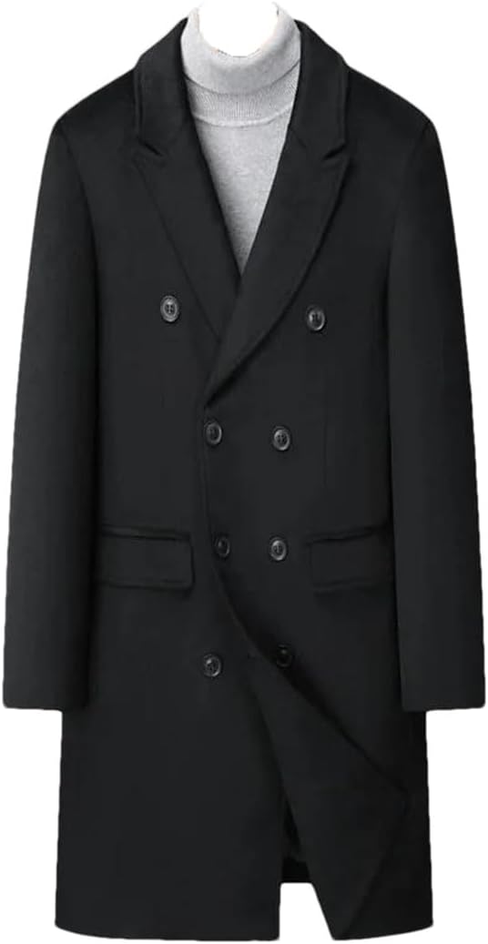 Jacket Casual Trench Coat Men Double Breasted Wool Overcoat