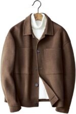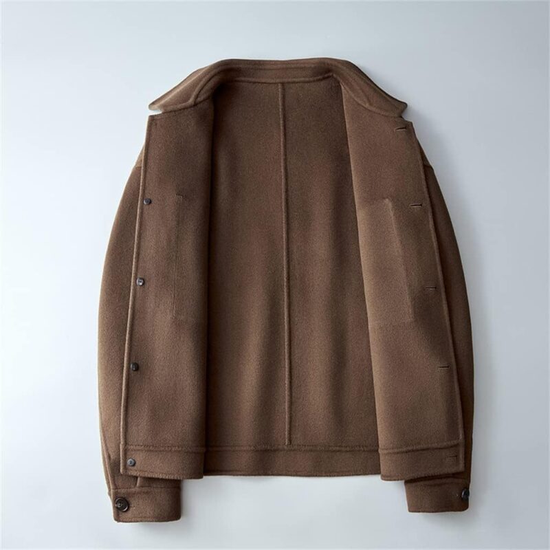 Men’s Long-Sleeved Wool Coat Winter Warm Short Coat Casual Lapel Pea Coat