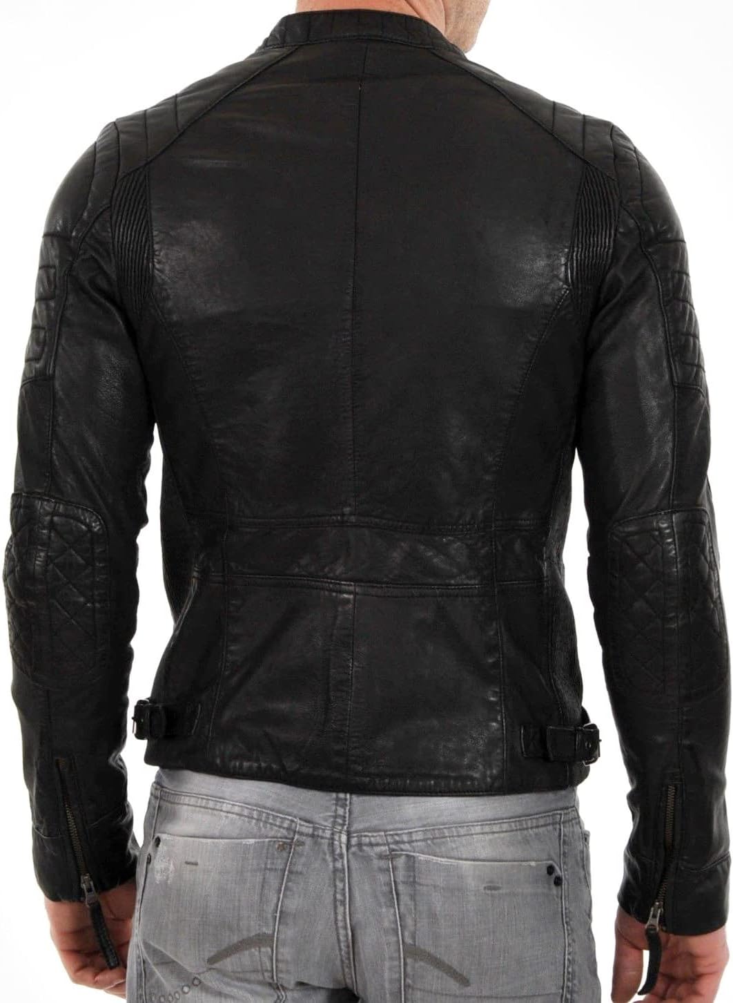 - We use natural hide to produce real leather garments that won’t crack or break for many years. No matter how many times you wear our leather motorcycle jacket men, it stays original