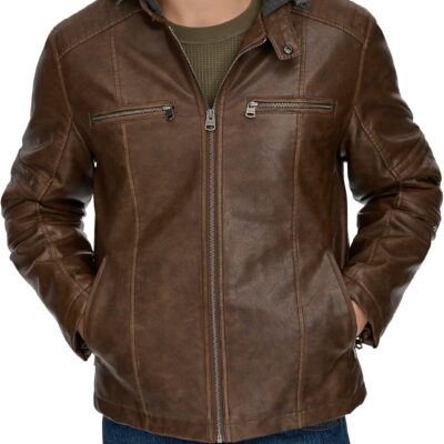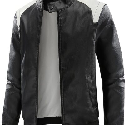 Mens Casual Stand Collar Slim Fit Faux Leather Jacket Biker Motorcycle Jacket