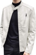 Mens Casual Stand Collar Slim Fit Faux Leather Jacket Biker Motorcycle Jacket