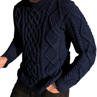 Men’s Slim Crewneck Pullover Sweater Winter Casual Chunky Cable Knit Comfort Heavy Long Sweaters