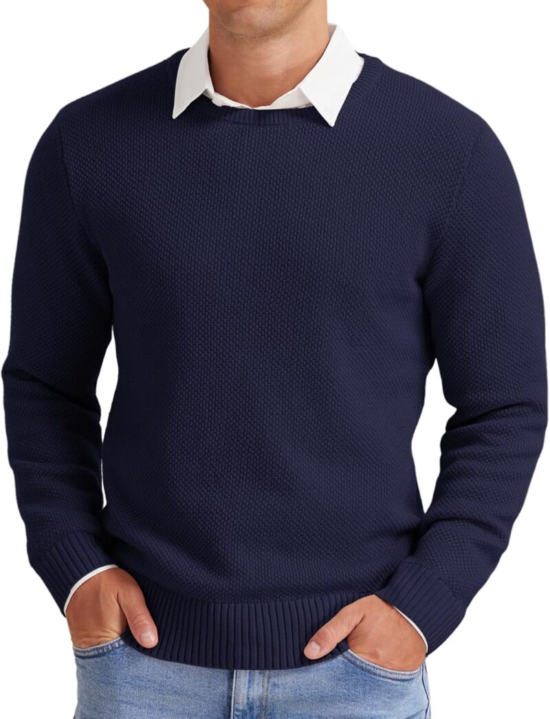 Men’s Crewneck Sweater Soft Casual Pullover Knitwear Lightweight Sweaters with Ribbing Edge
