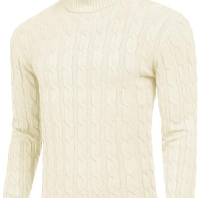 Men’s Slim Turtleneck Sweater Casual Twisted Knitted Pullover Sweaters