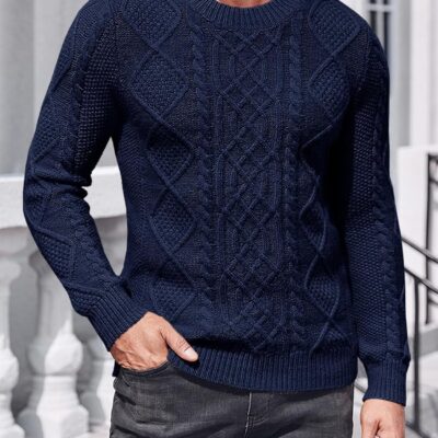 Men’s Slim Crewneck Pullover Sweater Winter Casual Chunky Cable Knit Comfort Heavy Long Sweaters