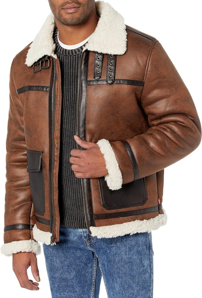 - STYLISH FEATURES: Faux shearling body with contrast faux leather pockets and sherpa trims at collar, hem, and cuffs