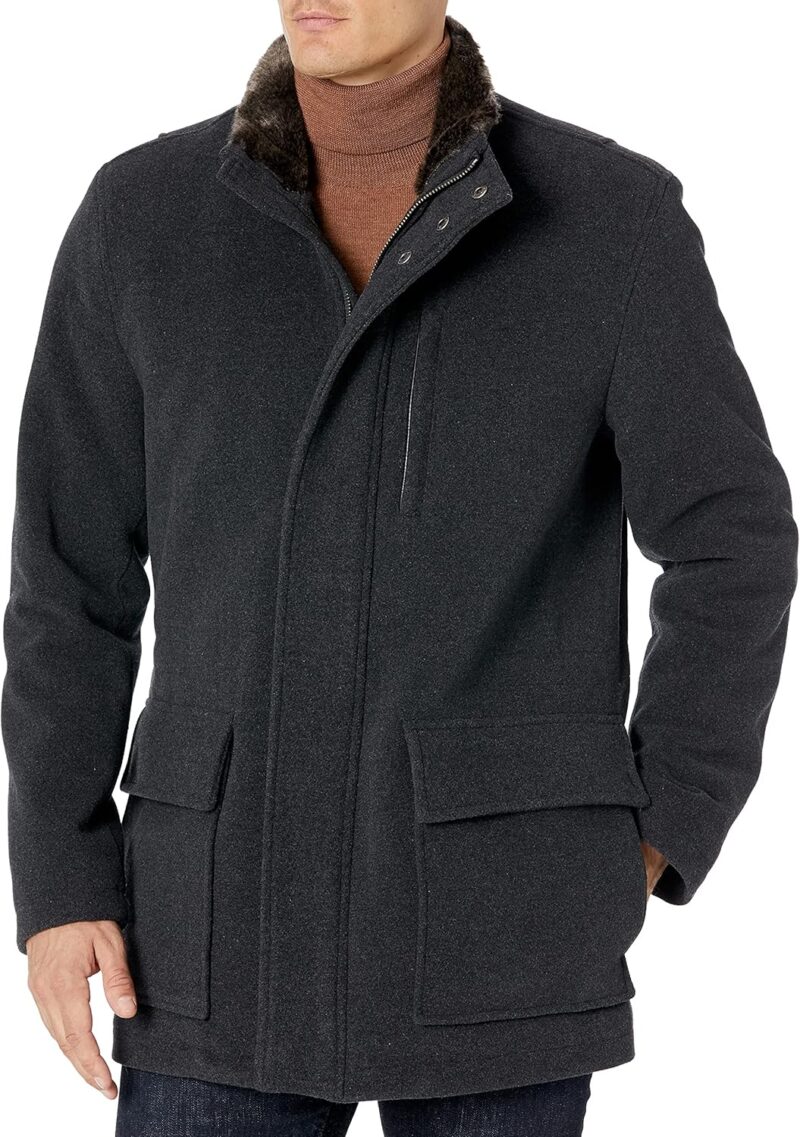 Men’s Fur Lined Full Zip Wool Plush Car Coat