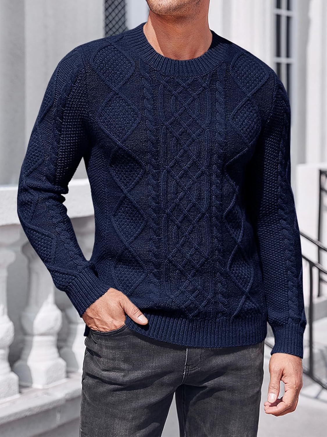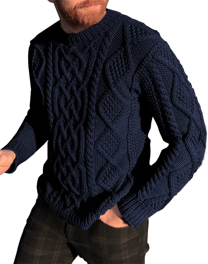 Men’s Slim Crewneck Pullover Sweater Winter Casual Chunky Cable Knit Comfort Heavy Long Sweaters