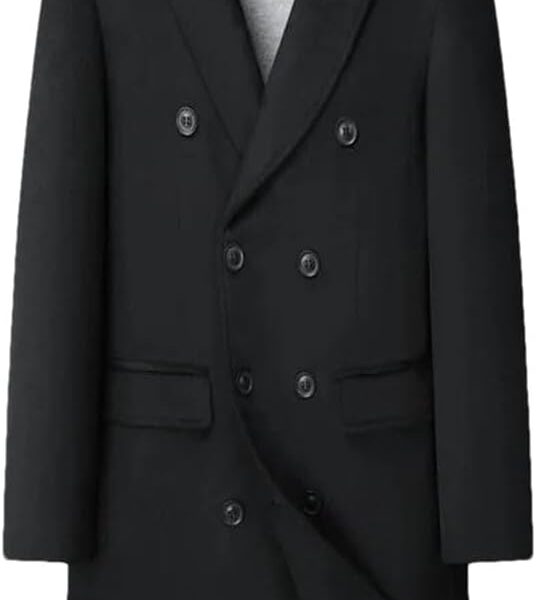 Men’s Wool Blends Coats Double Breasted Casual Long Woolen Men Trun Down Collar Outerwear