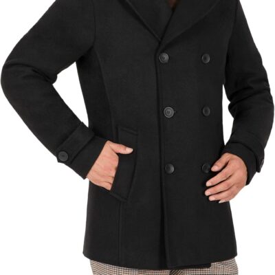 Men’s Double Breasted Pea Coat Winter Overcoat Short Trench Coat Notched Collar