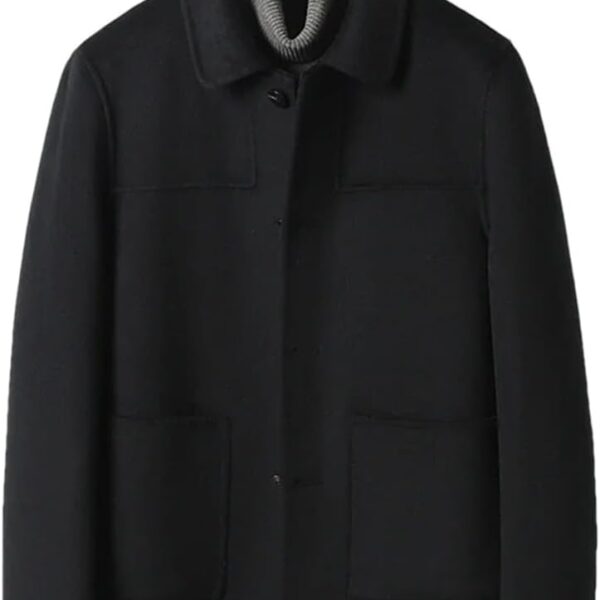 Men’s Double Breasted Pea Coat Winter Overcoat Short Trench Coat Notched Collar