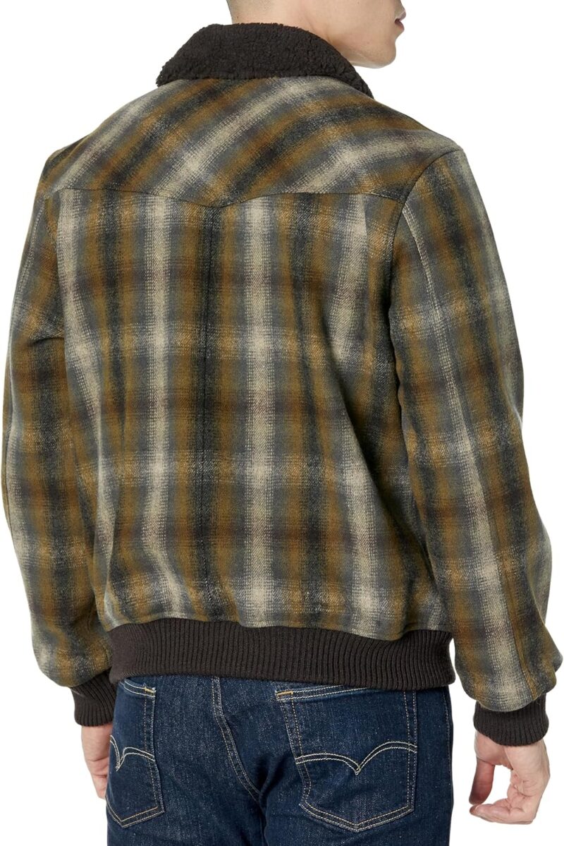 - antique metal logo snaps, and ribbing at the cuffs and hem